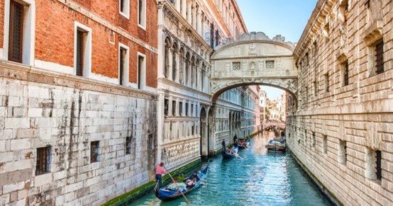叹息桥的两端连接法院与监狱两处,死囚通过此桥之时,常是行刑前的一刻,因感叹即将结束的人生而得名;是威尼斯最著名的桥梁之一。 乘坐贡多拉或是黄金水道感受这座水城的魅力。